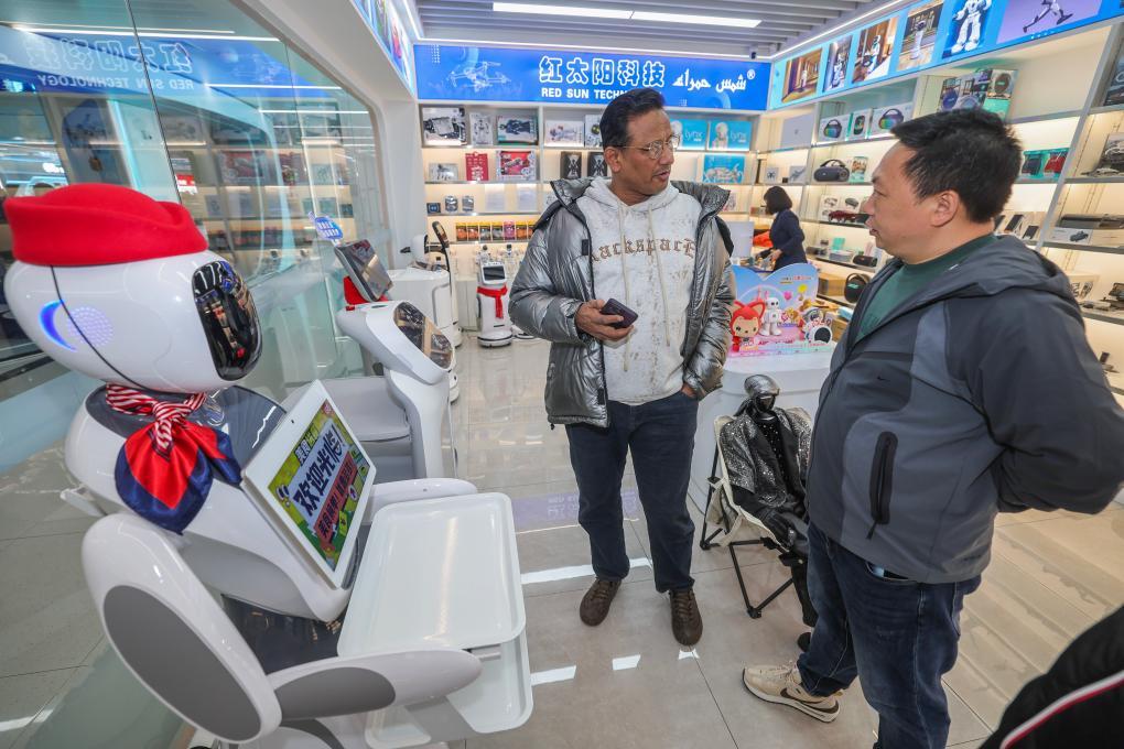 2月28日,外国客商在义乌全球数贸中心选购商品。新华社记者徐昱 摄
