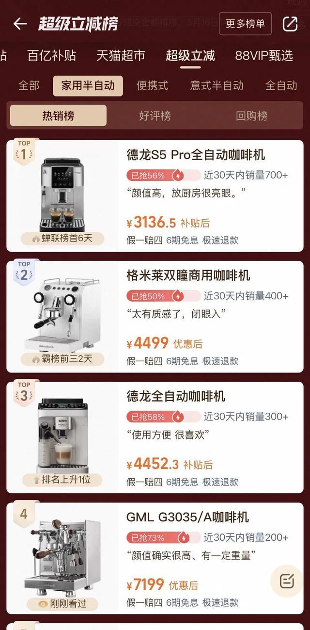 在这样的环境中,线上渠道飞速发展,且半自动意式咖啡机成为规模最大、增速最快的细分领域。